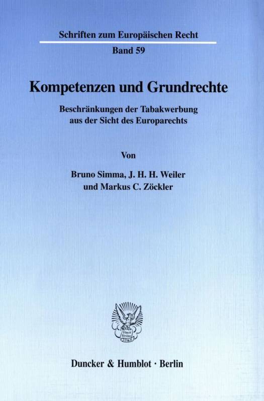 Kompetenzen und Grundrechte bilden die gemeinschaftsrechtlichen Eckwerte zur Begrenzung der Rechtsetzungsmacht der EG, an denen in dieser Untersuchung die früheren Vorschläge der Kommission und die unlängst verabschiedete RL 98/43/EG zum Verbot der Tabakwerbung gemessen werden.Die Autoren legen im Detail dar, daß der EG-Vertrag der Gemeinschaft keine Kompetenz gewährt, derart weitreichende Werbeverbote für Tabakprodukte gemeinschaftsweit anzuordnen. Insbesondere bietet Art. 100a EG-Vertrag keine ausreichende Rechtsgrundlage, da die Berufung auf Wettbewerbsverzerrungen und das Bedürfnis zur Rechtsangleichung keineswegs Werbeverbote dieses Umfangs rechtfertigen können. Darüber hinaus verletzt der Erlaß der Richtlinie aus formellen und materiellen Gesichtspunkten die gemeinschaftsrechtlichen Grundsätze der Verhältnismäßigkeit und der Subsidiarität. Unabhängig von der Kompetenzfrage stellt ein Werbeverbot für Tabakprodukte jedoch keine Verletzung der Meinungs- und Pressefreiheit oder des Eigentumsschutzes in internationalen Menschenrechtsverträgen dar und wäre als ein gerechtfertigter Eingriff in die Grundrechte des Gemeinschaftsrechts anzusehen.Die Überschreitung der eigenen Kompetenzgrenzen durch die EG ist keine reine Formalität. Gerade im Lichte des Maastricht-Urteils des Bundesverfassungsgerichts droht ein derartiges Handeln ultra vires eine Verfassungskrise zwischen nationalen Verfassungsgerichten und dem Europäischen Gerichtshof heraufzubeschwören.