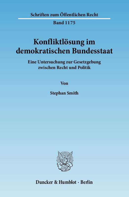 "Kuhhandel", "Zustimmung erkauft", "Gefeilsche": Spektakuläre Absprachen im Vorfeld von Bundesratsabstimmungen gehören immer wieder zu politisch bedeutsamen Gesetzgebungsverfahren. Ausgehend von solchen Verhandlungen untersucht Stephan Smith die Konfliktlösung im demokratischen Bundesstaat. Dazu entwirft er ein Modell des demokratischen Bundesstaates, nach dem das Grundgesetz nur mit dem Prinzip des demokratischen Bundesstaates angemessen verstanden werden kann, ein dritter Grundsatz neben Demokratie und Bundesstaatlichkeit. In diesem Verfassungstyp bestehen verschiedene Interessen von Bund, Ländern und Parteien, zwischen denen die Staatspraxis einen Ausgleich finden muß. Hierzu entwickelt der Autor eine Theorie der Konfliktlösung. Sie zeigt die Interessenlagen auf, erläutert die Gremien, Verfahren und Beteiligten der Konfliktlösung, entwirft ein theoretisches Modell und gibt Maßstäbe an die Hand, um die Konfliktlösung rechtlich bewertbar zu machen.