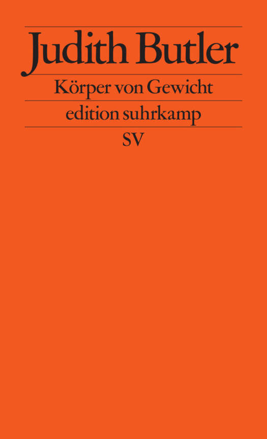 In Körper von Gewicht geht sie noch einen Schritt weiter: Sie entlarvt die liebgewordene Unterscheidung zwischen biologischem und sozialem Geschlecht ihrerseits als kulturell konstruierte Ideologie. Damit geraten scheinbar feststehende Kategorien wie Natur, Kultur und Körper ebenso ins Wanken wie zuvor schon die klaren Zuordnungen von Männlichkeit und Weiblichkeit. Butler fragt in ihrem »spannenden kämpferischen Werk« (Tages-Anzeiger) nach den subtilen Machtmechanismen, die hinter solchen Kategorien stehen.