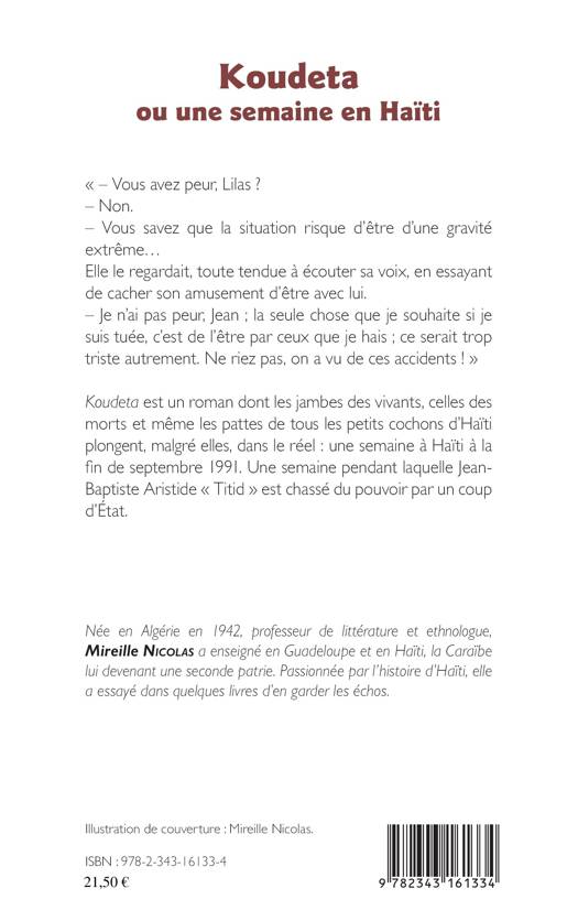 Koudeta est un roman dont les jambes des vivants, celles des morts et même les pattes de tous les petits cochons d'Haïti plongent, malgré elles, dans le réel : une semaine à Haïti à la fin de septembre 1991. Une semaine pendant laquelle Jean- Baptiste Aristide « Titid » est chassé du pouvoir par un coup d'État.