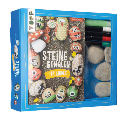 Das beliebte Kreativ-Set jetzt auch für Kinder. Alles was man braucht in einem Set. Das Set umfasst echte Steine, vier Acrylstifte, einen Nachtleuchtstift und ein Buch mit Schritt-für-Schritt Anleitungen und tollen Inspirationen und Spieletipps. Das perfekte Geschenk für alle kreativen Steine-Sammler!
