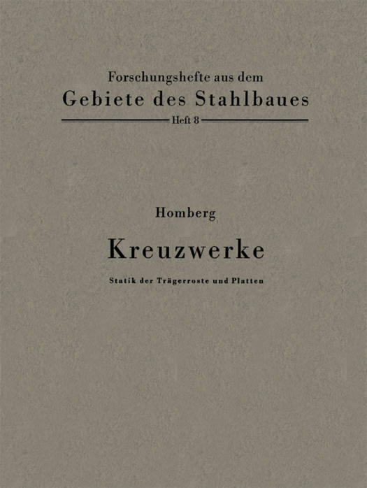 Der Brückenbau zeigt eine Reihe von häufig auftretenden statischen Erscheinungsformen. Es sind dies 1. Kreuzwerke - Trägerroste - ohne Drehsteifigkeit, die als frei aufliegende und durch- laufende Balkenbrücken bei kleinen und mittleren Stützweiten Verwendung finden, 2. Kreuzwerke mit drehsteifen Hauptträgern - Kastenträgern -, die die mittleren und großen Stützweiten erschließen, 3. Kreuzwerkplatten - orthotrope Platten -, die als Fahrbahnkonstruktionen und Brücken niedriger Bauhöhen Anwendung finden, 4. Isotrope Platten, die als Fahrbahnabdeckungen und zur Überbrückung kleiner Stütz- weiten dienen. Während die beiden ersten Systeme üblicherweise mit Hilfe der Stabstatik, die letzteren mittels der Plattentheorie behandelt werden, zeigt die vorliegende Arbeit, daß alle vier Systeme einheitlich auf dem Wege über die Stabstatik berechnet werden können. Das neue Berech- nungsverfahren ist auf der klassischen Statik aufgebaut, wie sie Von Müller-Breslau und meinen Hochschullehrern Hertwig und Pohl in Berlin vorgetragen wurde. Zur Arbeit wurde ich durch eine 1940 erschienene Veröffentlichung von Bültmann angeregt, in der für einen einfachen Sonderfall des Kreuzwerks eine geschlossene Lösung angegeben wurde. Die von mir gefundenen Gleichungen für das Kreuzwerk mit unendlich vielen, unendlich schmalen dreh- und biegesteifen Hauptträgern und unendlich vielen, unendlich schmalen nur biegesteifen Querträgern schließen die Lösungen für isotrope und drehsteife orthotrope Platten ein, da beim Grenzübergang vom Kreuzwerk zur Platte nur eine Schar der Träger des Kreuzwerks drehsteif zu sein braucht. So kann mein Berechnungsverfahren auch zur Untersuchung von Flächentragwerken .dienen.