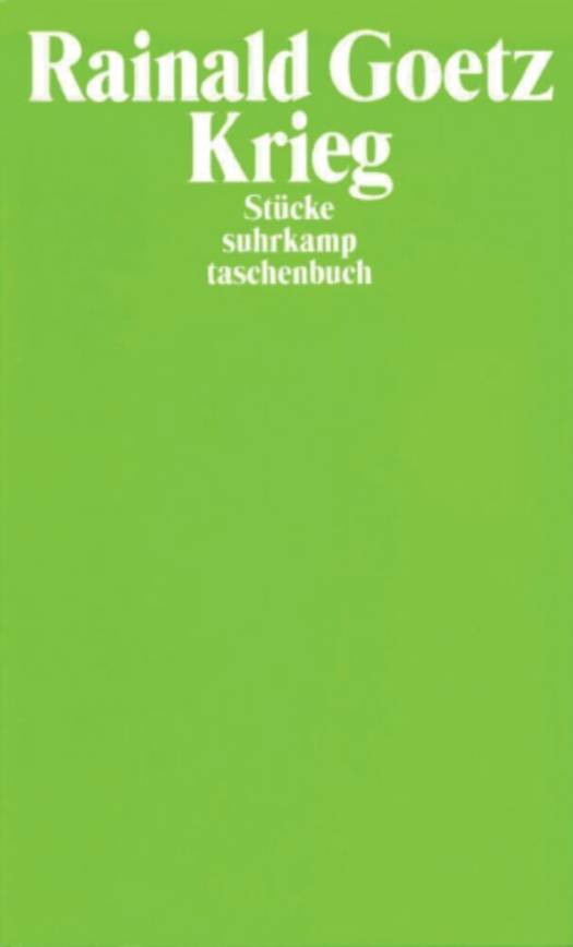 Krieg ist drei Theaterstücke. Krieg als Festungskrieg in Aktion ist Heiliger Krieg: Welt, Revolution, Bier. Der Kampf geht weiter. Krieg in der Nacht ist Schlachten: Familie, Kunst, Haß. Der Kampf hält an. Krieg zum Schluß heißt schließlich und endlich hier Traktat Gegen Den Widerstand Des Materials Ergibt Weder Material Noch Widerstand Sondern Summa Summarum Traktat Genannt von Herzen Kolik: Ich, Wort, Tod.