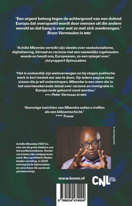 ‘Achille Mbembe vertolkt zijn ideeën over neokolonialisme, digitalisering, klimaat en racisme met een nauwelijks ingehouden woede en houdt ons, Europeanen, zo een spiegel voor.’