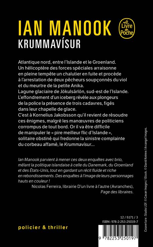 Ian Manook parvient à mener ces deux enquêtes avec brio, mêlant la politique islandaise à celle du Danemark, du Groenland et des États-Unis, tout en gardant un récit fluide et riche en rebondissements. Des enquêtes à l’image de leurs personnages hauts en couleur ! Nicolas Ferreira, librairie D’un livre à l’autre (Avranches), Page des libraires.