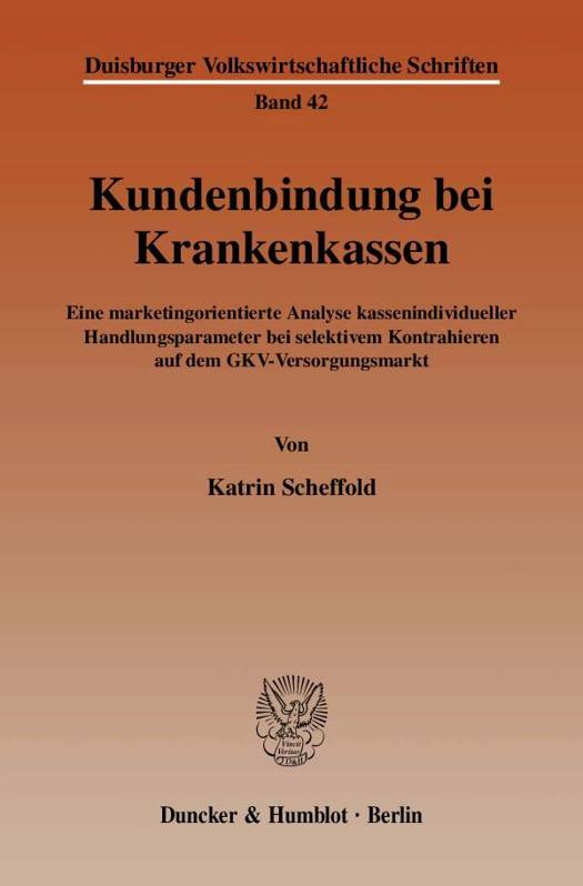 Ziel der vorliegenden Arbeit ist zum einen, die Wichtigkeit der Kundenbindung für den Erfolg einer Krankenkasse herauszuarbeiten, und zum anderen herauszufinden, wie die Krankenkasse ihre Versicherten durch das Angebot eines präferenzgerechten Krankenversicherungsangebotes an sich binden kann. Hierzu entwickelt Katrin Scheffold unter Berücksichtigung der ökonomischen und verhaltenswissenschaftlichen Theorien zur Bindung von Kunden je ein Modell zur Kundenbindung für Pflichtversicherte und für freiwillig Versicherte. Die Unterscheidung in diese beiden Versichertengruppen ist notwendig, da freiwillig Versicherte im Gegensatz zu Pflichtversicherten auch in die PKV wechseln können. Aus den theoretischen Modellen leitet die Autorin Wettbewerbsparameter ab, die dazu geeignet sind, die Bindung eines Versicherten an eine Kasse zu stärken. Mit Hilfe einer Conjoint-Analyse werden für ausgewählte Wettbewerbsparameter Teilnutzenwerte und relative Wichtigkeiten ermittelt, so dass - ausgehend von verschiedenen Wettbewerbssituationen - Marktsimulationen durchgeführt werden können. Die Ergebnisse der Simulationen sind zum Teil überraschend und zeigen auf eindrucksvolle Weise, wie eine Kasse die Conjoint-Analyse einsetzen kann, um bei selektivem Kontrahieren ein präferenzgerechtes Versorgungsangebot zu konzipieren und dadurch Kunden zu binden.