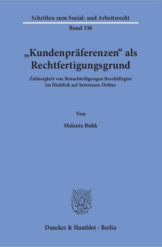 7, 1 AGG grundsätzlich verbotenen Benachteiligungen Beschäftigter im Hinblick auf Interessen Dritter nach US-amerikanischem, europäischem und deutschem Recht. Inspiriert von Ansätzen aus dem US-amerikanischen Recht entwickelt sie ein vierstufiges Prüfungsraster, das die Maßstäbe