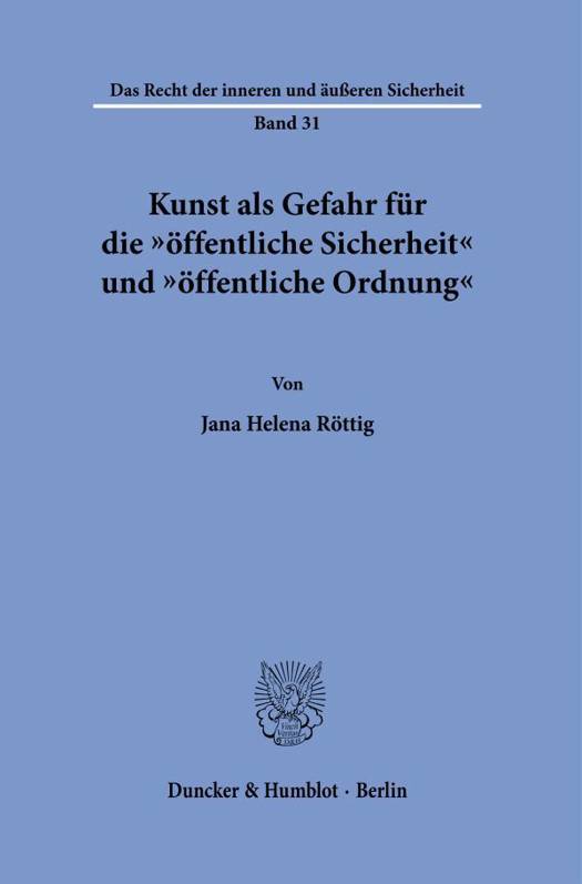 English summary: Art as a Danger to Public Safety and Public Order This thesis focuses on state intervention against art based on the general clause of both police and public order law since the Weimar era. Both the respective interpretations and applications of the key terms art, public safety and public order as well as their relationship to each other is considered. This thesis is based on the contemporary views from both case law and literature, as well as practical examples from different art genres. German description: Seit der Weimarer Republik wird die polizei- und spater auch ordnungsrechtliche Generalklausel haufig als Rechtsgrundlage fur ein staatliches Einschreiten gegen Kunstler herangezogen. In Theorie und Praxis treffen hierbei die drei Kernbegriffe dieser Arbeit aufeinander: Kunst sowie die Schutzguter der offentlichen Sicherheit und offentlichen Ordnung. In den Blick genommen wird hier sowohl die zeitgenossische Auslegung und Anwendung der drei Kernbegriffe als auch ihr jeweiliges Verhaltnis zueinander. Neben den zeitgenossischen Ansichten aus Rechtsprechung und Literatur werden insbesondere Praxisbeispiele aus unterschiedlichen Kunstgenres analysiert. Fur die Zeit seit der Weimarer Republik zeigt sich trotz der Liberalisierung gesellschaftlicher Ansichten keine klare Tendenz in Bezug auf das Einschreiten gegen Kunst zum Schutz der offentlichen Sicherheit oder offentlichen Ordnung. Zusatzlich deutet sich im digitalen Raum eine private Gefahrenabwehr im Bereich der Kunst an.