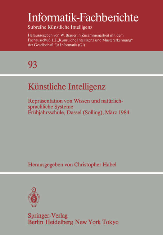 Um der starken Nachfrage nach Ausbildung und Fortbildung im Bereich der Künstlichen Intelligenz Rechnung zu tragen, wurde vom Fachausschuss 1.2 ''Künstliche Intelligenz und Mustererkennung" der Gesellschaft für Informatik vom 5. -16. März 1984 in DasseI (Solling) eine zweiwöchige Frühjahrsschule durchgeführt. Diese Frühjahrsschule war die Nachfolgeveranstaltung zur KIFS-82, die im März 1982 in Teisendorf stattfand. Die diesjährige KIFS stand unter dem Themenschwerpunkt "Repräsentation von Wissen und natürlichsprachliche Systeme". Das Kursangebot umfasste: Gruldkurse: - Bildverstehen (B. Neumann, Hamburg) - Automatisches Beweisen (J. Siekmann, Kaiserslautern) - Natürlichsprachliche Systeme (W. Wahlster, Saarbrücken) Aufbaukurse: - Inferenzmethoden (W. Bibel, München) - Parser als integraler Bestandteil von Sprachverarbeitungssystemen (T. Christaller, Hamburg) - Lernen und Wissensakquisition (Ch. Habel & C.-R. Rollinger, Berlin) - Techniken der Wissensdarstellung (J. Laubseh, Stuttgart) - Textverstehen und Textproduktion (U. Quasthoff-Hartmann, Bielefeld). - Semantik~odelle in der Künstlichen Intelligenz (C. Schwind, Marseille) Spezialkurse: - LISP (G. Görz, Erlangen) - LISP 2 (H. Stoyan, Erlangen) - PROLOG (H. Gust & M. König, Osnabrück/ Berlin) Die Durchführung der Spezialkurse, die eine Einführung bzw. Vertiefung der für die KI wichtigsten Programmiersprachen zum Ziel hatten, erfolgte auf Kleinrechnern (verschiedener Hersteller) und zum Teil auf einer LISP~aschine. Die Rechner wurden ausserdem für Übungen und Vorführungen zu einigen der weiteren Kurse verwendet. Hierdurch wurde es möglich, die im Vorlesungsteil der Kurse erworbenen theoretischen Kenntnisse, teilweise sogar am Rechner anzuwenden.