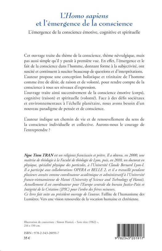 L'émergence et le fait de la conscience dans l'homme ont suscité et continuent à susciter beaucoup de questions et d'interprétations. L'auteur propose une conception holistique et trinitaire de l'homme comme être de désir, de raison et de volonté, pour rendre compte de la conscience à tous ses niveaux d'expression. L'ouvrage traite ainsi successivement de la conscience émotive (corps), cognitive (raison) et spirituelle (volonté). Face à des défis sociétaux et environnementaux à l'échelle planétaire, l'ouvrage propose un nouveau paradigme de pensée et de conscience.