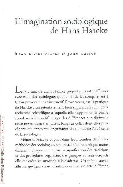 Traduction longtemps attendue d'un essai consacré au travail de l'artiste Hans Haacke, sans doute le plus emblématique de l'art engagé de notre époque, et paru initialement dans un ouvrage lui-même devenu un classique : Framing and Being Framed. 7 Works 1970-75, cette étude procède à l'évaluation de l'oeuvre de Haacke du point de vue sociologique et donne l'occasion à Howard Saul Becker de revenir, dans une postface inédite, sur la rencontre avec l'artiste qui l'a initié à l'art contemporain.