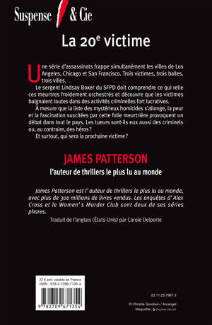 Le sergent Lindsay Boxer du SFPD doit comprendre ce qui relie ces meurtres froidement orchestrés et découvre que les victimes baignaient toutes dans des activités criminelles fort lucratives.