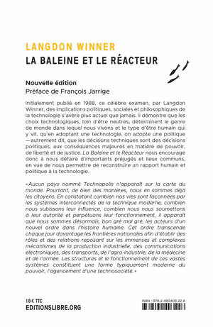 Initialement publié en 1988, ce célèbre examen, par Winner, des implications politiques, sociales et philosophiques de la technologie s'avère plus actuel que jamais. Il démontre que les choix technologiques, loin d'être neutres, déterminent le genre de monde dans lequel nous vivons et le type d'être humain qui y vit, que lorsqu'on adopte une technologie, on adopte une politique - autrement dit, que les décisions techniques sont des décisions politiques, aux conséquences majeures en matière de pouvoir, de liberté et de justice. Ce livre nous encourage donc à nous défaire d'importants préjugés et lieux communs, en vue de nous permettre de reconstruire un rapport humain et politique à la technologie. Cet ouvrage ayant fait date dans l'histoire et la philosophie des sciences ressort aujourd'hui dans une édition augmentée d'un nouveau chapitre, d'une préface et d'un post-scriptum de l'auteur, ainsi que d'une postface de l'historien spécialiste des techniques François Jarrige.