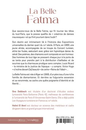 Que savons-nous de la Belle Fatma, qui fit tourner les têtes du tout-Paris, que la presse qualifia de « créatrice de danses mauresques », et qui finit pourtant dans l’oubli ? Son destin est intimement lié à l’histoire des Expositions universelles du dernier quart du XIXe siècle. A Paris, en 1889, une jeune almée, accompagnée de sa troupe du Concert tunisien, attire les foules, exécutant avec grâce son hypnotique danse du sérail. Des poèmes, des chansons sont composés en son honneur. Des hommes de tout âge se pressent chaque jour à la porte de sa tente pour prendre part à la distribution d’oeillades et de sourires que la charmeuse prodigue sans compter, Victor Hugo et Louis Ricard – le ministre de la Justice de l’époque – y compris... La Belle Fatma est née à Alger en 1868, d’un père issu d’une riche famille de commerçants en diamants. Et derrière sa fulgurante ascension et sa renommée, se cache une quête poignante d’identité et de liberté...