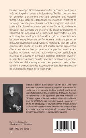 Dans cet ouvrage, Pierre Nantas nous fait découvrir la méthodologie humaniste et intégrative qu'il utilise pour conduire un entretien d'anamnèse structuré, proposer des objectifs thérapeutiques réalistes, débusquer et éliminer les tentatives de sabotage du changement réussi dont il est le garant vis-à-vis du patient. Clair et concis, ce livre propose une approche novatrice aux psychothérapeutes, mais aussi aux médecins, aux psychologues et à tous les aidants en général.