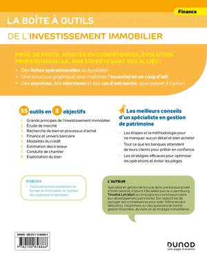 approche pédagogique et illustrée, axée sur le concret, cet ouvrage expose les fondamentaux du secteur immobilier et les pièges à éviter, détaille les stratégies à la fiabilité et la rentabilité éprouvées, dévoile de nombreuses subtilités techniques et pratiques pour optimiser vos opérations.