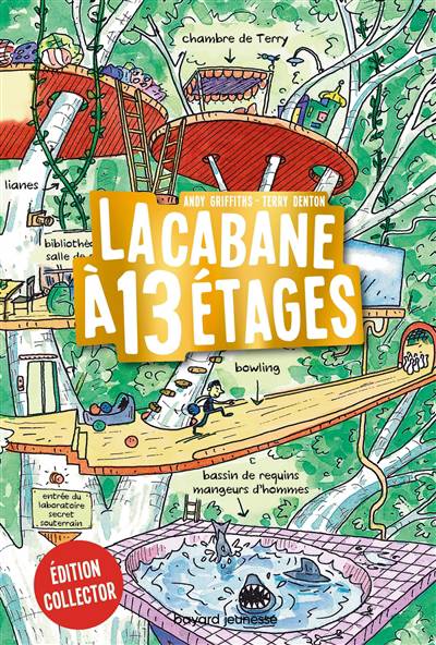 Andy et Terry vivent en haut d'un arbre, dans une cabane. Mais attention, pas n'importe laquelle ! C'est une cabane à 13 étages avec un bowling, un bassin de requins mangeurs d'hommes, un laboratoire secret souterrain, un exterminateur de légumes, une fontaine de limonade et une machine qui t'envoie un chamallow dans la bouche dès que tu as un petit creux. Pas facile de travailler dans un endroit pareil ! Pourtant, Andy écrit et Terry dessine. La preuve ? Ouvre ce livre !