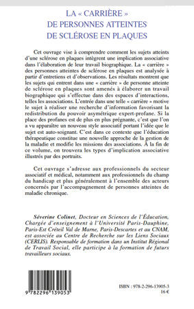 L'irruption de la sclérose en plaques est un évènement dans le parcours du sujet qui implique une réorganisation globale de l'existence et engendre pour l'individu de nouveaux rapports avec lui-même, son corps, la société, l'environnement. L'association, lieu d'implication et d'interaction sociale, se situe au carrefour de ce travail de recomposition. Cette réflexion se fonde sur deux concepts : ceux "d'implication associative" et de "travail biographique", construit par Anselm Strauss et Juliet Corbin.