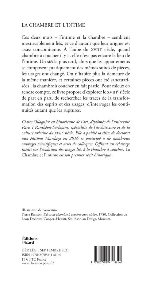 Ces deux mots - l'intime et la chambre - semblent inextricablement liés, et ce d'autant que leur origine est assez concomitante. À l'aube du XVIIIe siècle, quand chambre à coucher il y a, elle n'est pas encore le lieu de l'intime. Un siècle plus tard, alors que les appartements se composent pratiquement des mêmes suites de pièces, les usages ont changé. On n'habite plus la demeure de la même manière, et certaines pièces ont été sanctuarisées ; la chambre à coucher en fait partie. Pour mieux en rendre compte, ce livre propose d'explorer le XVIIIe siècle de part en part, de rechercher les traces de la transformation des esprits et des usages, d'interroger les continuités autant que les ruptures.