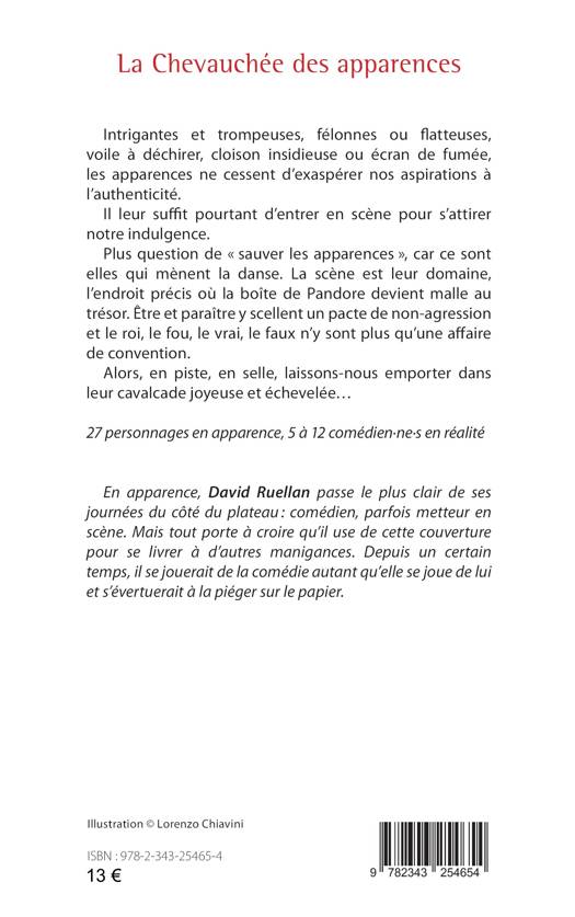 Intrigantes et trompeuses, félonnes ou flatteuses, voile à déchirer, cloison insidieuse ou écran de fumée, les apparences ne cessent d’exaspérer nos aspirations à l’authenticité. Il leur suffit pourtant d’entrer en scène pour s’attirer notre indulgence. Plus question de « sauver les apparences », car ce sont elles qui mènent la danse. La scène est leur domaine, l’endroit précis où la boîte de Pandore devient malle au trésor. Être et paraître y scellent un pacte de non-agression et le roi, le fou, le vrai, le faux n’y sont plus qu’une affaire de convention. Alors, en piste, en selle, laissons-nous emporter dans leur cavalcade joyeuse et échevelée...