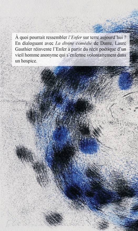 A quoi pourrait ressembler l’Enfer sur terre aujourd’hui ? En dialoguant avec La divine comédie de Dante, Laure Gauthier réinvente l’Enfer à partir du récit poétique d’un vieil homme anonyme qui s’enferme volontairement dans un hospice : il fuit notre monde où l’on est enseveli sous un flot constant d’images et d’objets et espère, depuis son EHPAD, trouver enfin le temps de penser à sa vie avant de mourir. Mais l’Enfer aujourd’hui, c’est bien de ne<br /> pas pouvoir nous retrancher ni respirer, ne pas parvenir à trouver le temps, même pas à l’orée de la mort.<br /> Dans un récit sombre, caustique mais où l’humour affleure, Laure Gauthier nous offre un panorama de notre société en clair-obscur pour nous inciter à redresser la tête et à « oser faire le choix de respirer, les pieds nus et les mains vides ».
