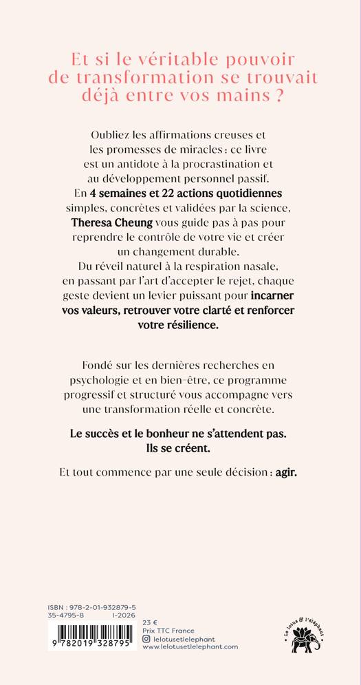 est un antidote à la procrastination et au développement personnel passif. En 4 semaines et 22 actions quotidiennes simples, concrètes et validées par la science, Theresa Cheung vous guide pas à pas pour