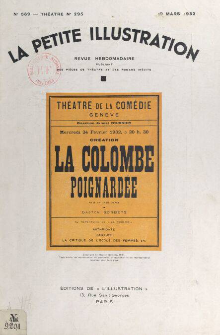 Pièce en 3 actes, représentée pour la première fois le 24 février 1932 au Théâtre de la Comédie à Genève