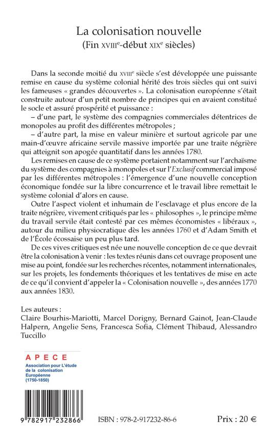 Dans la seconde moitié du XVIIIe siècle s'est développée une puissante remise en cause du système colonial hérité des trois siècles ayant suivi les fameuses « grandes découvertes ». Les contestations de ce système portaient notamment sur l'archaïsme du système des compagnies à monopoles et sur l'Exclusif commercial imposé par les différentes métropoles, ainsi que sur l'aspect violent et inhumain de l'esclavage et plus encore de la traite négrière, vivement critiqués par les "philosophes". De ces vives critiques sont nés les fondements théoriques et les tentatives de mise en acte de ce qu'il convient d'appeler la « Colonisation Nouvelle », qui s'étend des années 1770 aux années 1830.