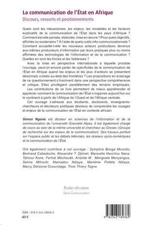 Quels sont les mécanismes, les enjeux, les modalités et les facteurs explicatifs de la communication de l'Etat dans les pays d'Afrique ? Comment est-elle pensée, élaborée, mise en uvre ? Pour quels objectifs, affichés souterrains ? A l'aide de quels outils info-communicationnels ? Comment accueille-t-elle les nouveaux acteurs producteurs devenus eux-mêmes producteurs d'information par leurs pratiques plus ou moins affirmées des technologies de l'information et de la communication ? Quelles en sont les forces et les faiblesses ?