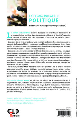 Le propos de ce livre se fonde sur une question fondamentale: comment, dans un contexte de la parole libérée - comme en République Démocratique du Congo (1990-1997) -, la communication politique s'est-elle déployée dans l'espace public, à travers notamment un média de masse comme la télévision ? La question conduit à l'examen des problèmes de communication politique provoqués par le nouveau contexte de processus de démocratisation.