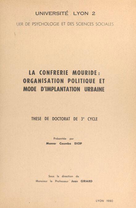 La confrérie mouride : organisation politique et mode d'implantation urbaine EBOOK