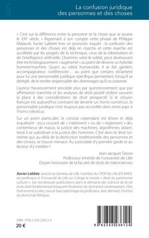« C’est sur la différence entre la personne et la chose que se jouera le XXIe siècle. » Reprenant cette phrase de Philippe Malaurie, Xavier Labbée livre un pronostic inquiet : la confusion des personnes et des choses est accélérée par les progrès de la technique, ceux de la robotisation et de l’intelligence artificielle. L’homme, voire le soldat, peut dorénavant être « augmenté » au point de devenir un hybride homme/machine. Quant au robot humanoïde, il se fait gardien, accompagnateur, conférencier, certains réclament pour lui une personnalité juridique spécifique. Si le citoyen français est aujourd’hui contraint de devenir un homo numericus, la personnalité juridique n’est toutefois toujours pas accordée à l’homo roboticus. Mais le constat est d’ores et déjà inquiétant : sous couvert de « traitement » ou de « règlement » des contentieux de masse, la justice des machines, algorithmes aidant, tend à se substituer à la justice des hommes. C’est alors le droit lui-même qui est menacé.