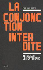 La Conjonction interdite est en quelque sorte une introduction à la pratique du skateboard. À partir des outils mis en place par Roger Caillois dans son essai Les Jeux et les Hommes (1958), l’auteur a cherché à décrire le skateboard définissant sa place parmi la diversité des jeux et des manières de jouer. Dans un second temps, il couple les catégories du jeu. Sur les six conjonctions possibles, deux lui paraissent fondamentales, deux seraient contingentes et deux antinomiques. Que l’une des deux « conjonctions interdites » caractérise le mieux le skateboard (et plus généralement les sports dits « de glisse ») semble indiquer que les jeux et les manières de jouer, tout comme les pratiques artistiques d’ailleurs, se sont considérablement étendus et complexifiés au cours de ces cinquante dernières années. Dans une position qui n’est pas sans rappeler l’intérêt d’artistes tels que Dan Graham ou Robert Smithson pour les cultures populaires, Raphaël Zarka se documente et écrit au sujet du skateboard depuis plusieurs années. Publié pour la première fois en 2003, La Conjonction interdite est son premier texte sur le sujet. Il définit ici les spécificités de cette pratique tout en décrivant les relations particulières qu’elle entretient avec la ville et certains de ses espaces.