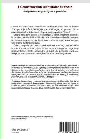 Quelle est donc cette construction identitaire dont tout le monde s'occupe aujourd'hui ? L'école n'est pas le commencement absolu de la construction identitaire mais une nouvelle manière de combiner les éléments que cette dernière induit. Quand on parle de construction identitaire à l'école, c'est en réalité le cursus scolaire entier qui est en jeu, ce temps d'apprentissage long pendant lequel l'école « construit » un sujet, une personne, en même temps qu'elle façonne un élève prêt à recevoir un enseignement.