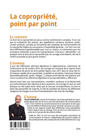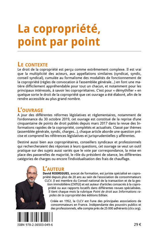 Le droit de la copropriété est perçu comme extrêmement complexe. Il est vrai que la multiplicité des acteurs, aux appellations similaires (syndicat, syndic, conseil syndical), cumulée au formalisme des modalités de fonctionnement de la copropriété (règles de convocation à l’assemblée générale…) en font une matière difficilement appréhendable pour tout un chacun, et notamment pour les principaux intéressés, à savoir les copropriétaires. C’est pour « démythifier » en quelque sorte le droit de la copropriété que cet ouvrage a été élaboré, afin de le rendre accessible au plus grand nombre.