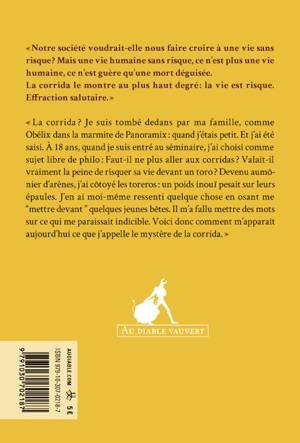 « La corrida ? Je suis tombé dedans par ma famille, comme Obélix dans la marmite de Panoramix : quand j’étais petit. Et j’ai été saisi. À 18 ans, quand je suis entré au séminaire, j’ai choisi comme sujet libre de philo : Faut-il ne plus aller aux corridas ? Valait- il vraiment la peine de risquer sa vie devant un toro ? Devenu aumônier d’arènes, j’ai côtoyé les toreros : un poids inouï pesait sur leurs épaules. J’en ai moi-même ressenti quelque chose en osant me “mettre devant ” quelques jeunes bêtes. Il m’a fallu mettre des mots sur ce qui me paraissait indicible. Voici donc comment m’apparaît aujourd’hui ce que j’appelle le mystère de la corrida. »