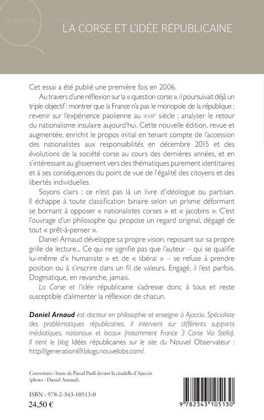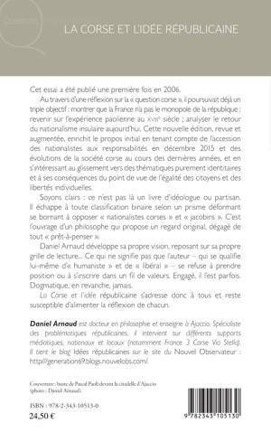 Au travers d'une réflexion sur la "question corse", cet essai poursuit un triple objectif : montrer que la France n'a pas le monopole de la république ; revenir sur l'expérience paolienne du XVIIIe siècle ; analyser le retour du nationalisme insulaire. Cette nouvelle édition enrichit le propos initial en tenant compte de l'accession des nationalistes aux responsabilités en décembre 2015 et des évolutions de la société corse au cours des dernières années, et en s'intéressant au glissement des thématiques purement identitaires et à ses conséquences du point de vue de l'égalité des citoyens et des libertés individuelles.