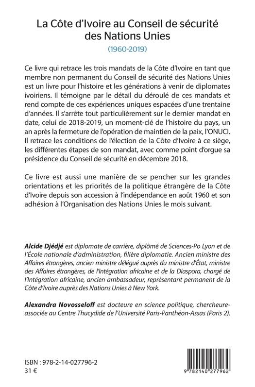 Ce livre qui retrace les trois mandats de la Côte d’Ivoire à un poste de membre non permanent du Conseil de sécurité des Nations Unies est un livre pour l’histoire et les générations à venir de diplomates ivoiriens. Il s’arrête tout particulièrement sur le dernier mandat en date, celui de 2018-2019, un moment-clé de l’histoire du pays. Il retrace les conditions de l’élection de la Côte d’Ivoire à ce siège, les différentes étapes de son mandat, avec comme point d’orgue sa présidence du Conseil de sécurité en décembre 2018. Ce livre est aussi une manière de se pencher sur les grandes orientations et les priorités de la politique étrangère de la Côte d’Ivoire depuis son accession à l’indépendance en août 1960 et son adhésion à l’Organisation des Nations Unies le mois suivant.