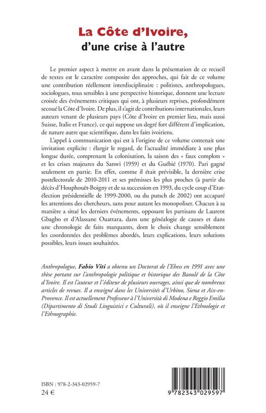 Le caractère composite de ces approches fait de ce recueil une contribution interdisciplinaire : politistes, anthropologues, sociologues, donnent une lecture croisée des évènements qui ont profondément secoué la Côte d'Ivoire. Il s'agit ici d'élargir le regard, de l'actualité immédiate à une plus longue durée, comprenant la colonisation jusqu'à la dernière crise postélectorale de 2010-2011.