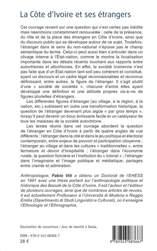 Cet ouvrage travaille sur la question de la présence et du rôle des étrangers en Côte d'Ivoire. Le discours public autour de cette question y est analysé, ce qui permet de dégager une typologie de l'État et de la société ivoirienne. Véritable "société de sociétés", où différents rapports aux figures plurielles d'étrangers co-existent, la Côte d'Ivoire nous est présentée sous un jour différent. Un ouvrage collectif qui affine et complexifie le regard.