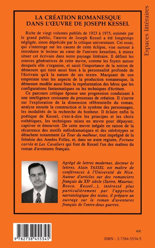 Riche de vingt volumes publiés de 1923 à 1975, estimée par le grand public, l'œuvre de Joseph Kessel a été longtemps négligée, sinon dépréciée par la critique universitaire. Cet essai, qui s'interroge sur les causes de cette éclipse, vise surtout à introduire le lecteur au cœur de l'univers kesselien, à mieux situer cet écrivain dans notre paysage littéraire.
