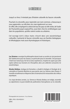 Jusqu’à ce livre, il n’existait pas d’histoire culturelle du faucon crécerelle. Pourtant, la crécerelle, pour reprendre son nom commun, a beaucoup à nous apprendre, sur elle bien sûr, mais également sur nous. En effet, elle a imprégné la culture de tous les pays où elle existe, de l’aube de l’humanité jusqu’à aujourd’hui, aussi bien chez les ornithologues que dans les populations, qu’elles soient rurales ou urbaines. Cet ouvrage écrit à deux mains s’inscrit dans une zoosémiotique culturelle, il présente le faucon crécerelle sous ses facettes biologiques et éthologiques mais aussi étymologiques et historiques.