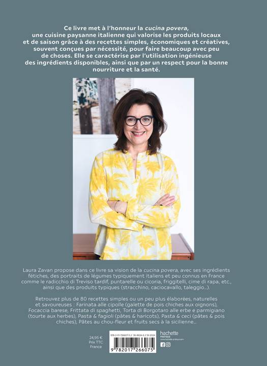 Laura Zavan propose dans ce livre sa vision de la cucina povera, avec ses ingrédients fétiches, des portraits de légumes typiquement italiens et peu connus en France comme le radicchio di Treviso tardif, puntarelle ou cicoria, friggitelli, cime di rapa, etc, ainsi que des produits typiques (stracchino, caciocavallo, taleggio...)