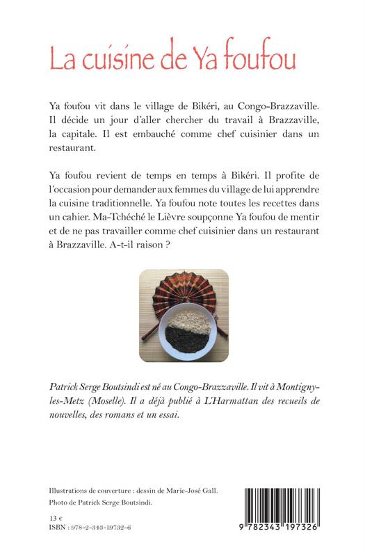 Ya foufou vit dans le village de Bikéri, au Congo-Brazzaville. Il décide un jour d’aller chercher du travail à Brazzaville, la capitale. Il est embauché comme chef cuisinier dans un restaurant. Il revient de temps en temps à Bikéri. Il profite de l’occasion pour demander aux femmes du village de lui apprendre la cuisine traditionnelle. Ya foufou note toutes les recettes dans un cahier. Ma-Tchéché le Lièvre soupçonne Ya foufou de mentir et de ne pas travailler comme chef cuisinier dans un restaurant à Brazzaville. A-t-il raison ?