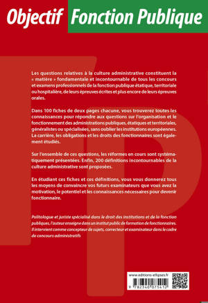 Les réformes en cours sont systématiquement présentées. Enfin, 150 définitions incontournables de la culture administrative sont proposées.