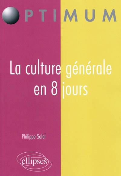 L’objectif de cet ouvrage est d’offrir aux candidats devant composer une dissertation écrite de culture générale un moyen efficace pour réussir cette épreuve. Son titre, La culture générale en 8 jours, indique qu’il s’agit de fournir les éléments de connaissance les plus indispensables à des candidats qui disposent de peu de temps de préparation, et qui ont besoin d’une approche à la fois synthétique et précise. Les 8 chapitres ici proposés sont donc conçus de manière à pouvoir être étudiés chacun sur toute une journée, selon une organisation déterminée du temps de travail. Les candidats disposant de plus de temps pourront toutefois allonger ces délais, et en modifier le calendrier afin d’approfondir les informations qu’ils trouveront dans le traitement de chaque question, pour leur plus grand profit.