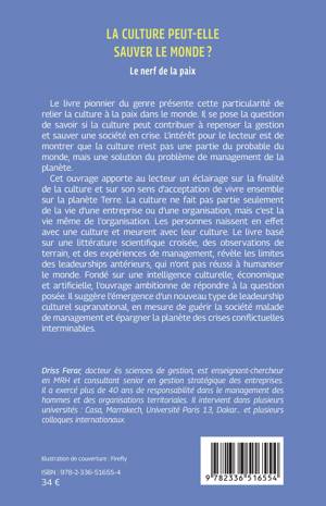 Le livre pionnier du genre présente cette particularité de relier la culture à la paix dans le monde. Il se pose la question de savoir si la culture peut contribuer à repenser la gestion et sauver une société en crise. L'intérêt pour le lecteur est de montrer que la culture n'est pas une partie du probable du monde, mais une solution du problème de management de la planète. Cet ouvrage apporte au lecteur un éclairage sur la finalité de la culture et sur son sens d'acceptation de vivre ensemble sur la planète Terre. La culture ne fait pas partie seulement de la vie d'une entreprise ou d'une organisation, mais c'est la vie même de l'organisation. Les personnes naissent en effet avec une culture et meurent avec leur culture. Le livre basé sur une littérature scientifique croisée, des observations de terrain, et des expériences de management, révèle les limites des leadeurships antérieurs, qui n'ont pas réussi à humaniser le monde. Fondé sur une intelligence culturelle, économique et artificielle, l'ouvrage ambitionne de répondre à la question posée. Il suggère l'émergence d'un nouveau type de leadeurship culturel supranational, en mesure de guérir la société malade de management et épargner la planète des crises conflictuelles interminables.