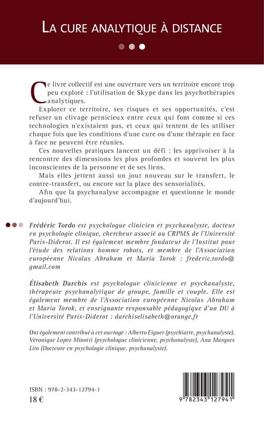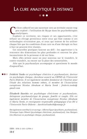 Cet ouvrage est une ouverture sur un territoire encore trop peu exploré : l'utilisation de Skype dans les psychothérapies analytiques. Les auteurs explorent les risques et opportunités de cette nouvelle pratique afin de l'apprivoiser. Ces pratiques jettent un jour nouveau sur le transfert, le contre-transfert ou encore la place des sensorialités.