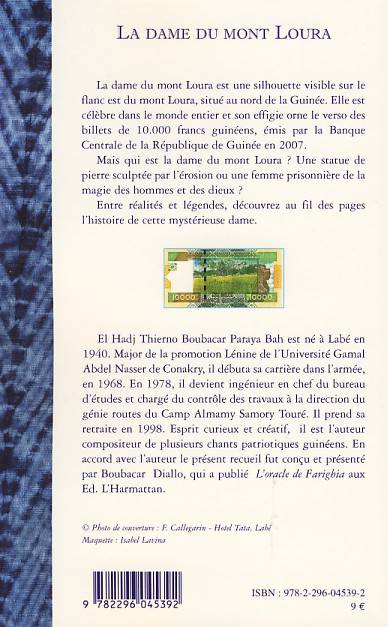 La dame du mont Loura, célèbre dans le monde entier, est une silhouette visible sur le flanc est du mont Loura, situé au nord de la Guinée. Mais qui est la dame du mont Loura ? Une statue de pierre sculptée par l'érosion ou une femme prisonnière de la magie des hommes et des dieux ? Entre réalités et légendes, ce livre nous fait découvrir l'histoire de cette mystérieuse dame.