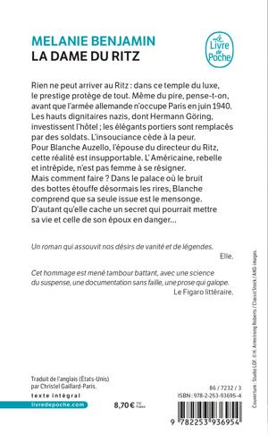 Rien ne peut arriver au Ritz : dans ce temple du luxe, le prestige protège de tout. Même du pire, pense-t-on, avant que l’armée allemande n’occupe Paris en juin 1940. Les hauts dignitaires nazis, dont Hermann Göring, investissent l’hôtel ; les élégants portiers sont remplacés par des soldats. L’insouciance cède à la peur. Pour Blanche Auzello, l’épouse du directeur du Ritz, cette réalité est insupportable. L’Américaine, rebelle et intrépide, n’est pas femme à se résigner. Mais comment faire ? Dans le palace où le bruit des bottes étouffe désormais les rires, Blanche comprend que sa seule issue est le mensonge. D’autant qu’elle cache un secret qui pourrait mettre sa vie et celle de son époux en danger, et ternir la légende du Ritz…